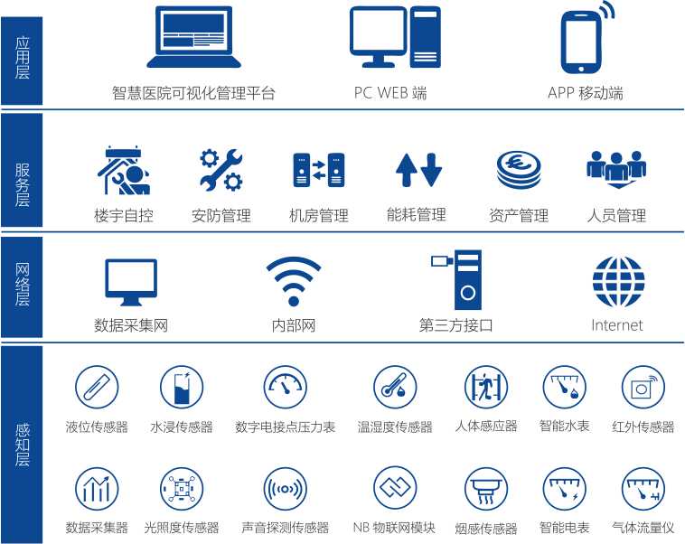 智慧醫院可視化管理平臺是基于云計算、5G、物聯網、超寬帶、人工智能和虛擬現實等相關技術與實時數據動態結合,為管理方提供的一套更為智慧、安全、長效的綜合管理平臺。它將智能化、信息化、機電設備、環境管理、安全防控管理、建筑能耗管理、人員管理等進行一體化整合,為企業實現智慧化管理提供可靠的人員管理、設備設施維護管理服務、安保管理、信息化決策等一系列專項服務。